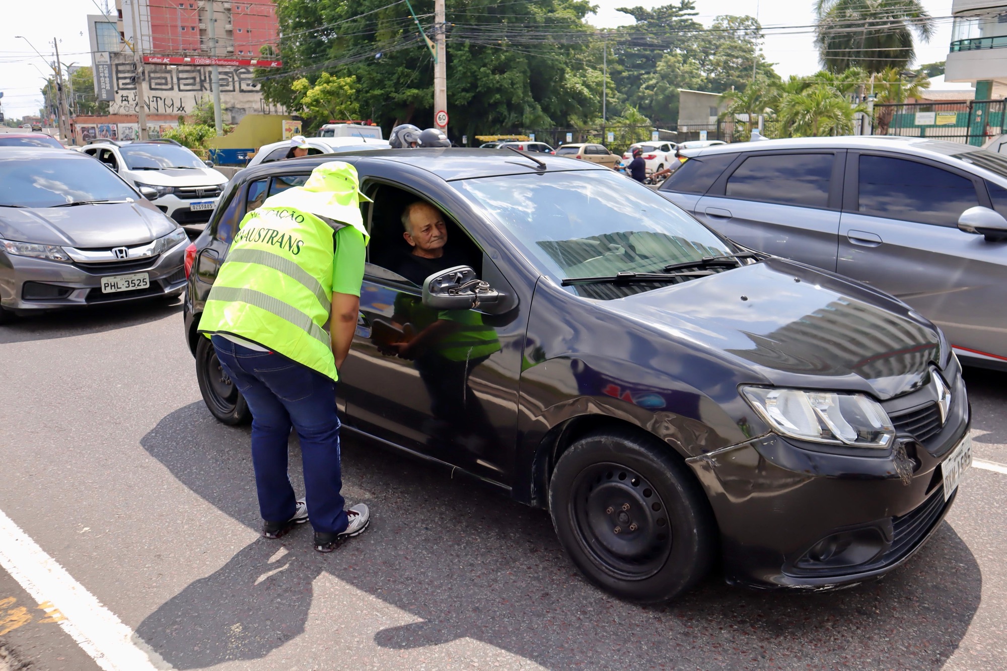 Com intuito de garantir a travessia segura e promover respeito à faixa de pedestre, a Prefeitura de Manaus, por meio do Instituto Municipal de Mobilidade Urbana (IMMU), realizou, nesta quarta-feira, 6/11, mais uma ação educativa voltada aos motoristas que transitam na avenida Ephigênio Salles, na zona Centro-Sul da capital.