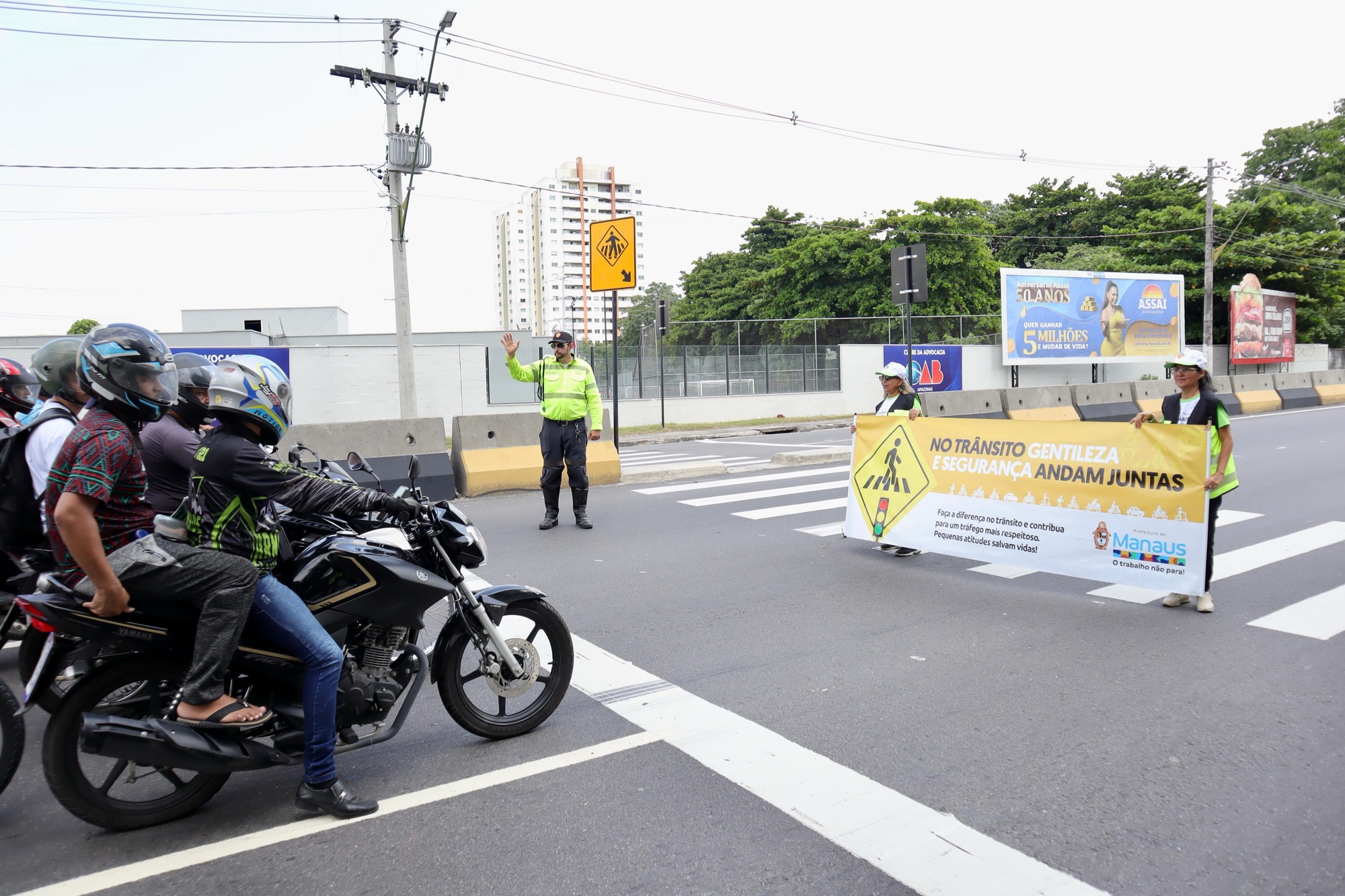 Com intuito de garantir a travessia segura e promover respeito à faixa de pedestre, a Prefeitura de Manaus, por meio do Instituto Municipal de Mobilidade Urbana (IMMU), realizou, nesta quarta-feira, 6/11, mais uma ação educativa voltada aos motoristas que transitam na avenida Ephigênio Salles, na zona Centro-Sul da capital.