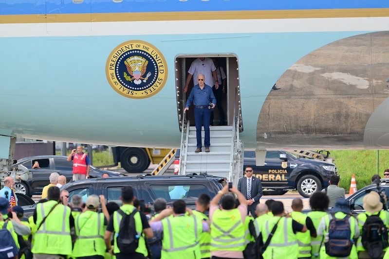 O prefeito de Manaus, David Almeida, participou da recepção em Manaus do presidente dos Estados Unidos da América (EUA), Joe Biden, na pista do Aeroporto Internacional Eduardo Gomes, por volta das 12h40 (hora Manaus) desse domingo, 17/11. O líder da maior potência econômica mundial desembarcou na cidade vindo de Lima, capital do Peru, onde se encontrou com o presidente da China, Xi Jinping.