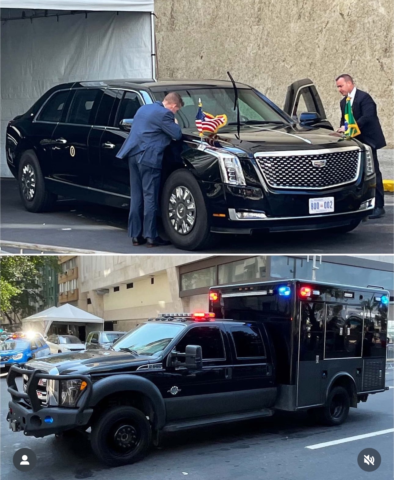 Esses veículos são transportados a cada viagem presidencial em um avião cargueiro C-17 Globemaster III, garantindo a segurança e logística da comitiva americana.