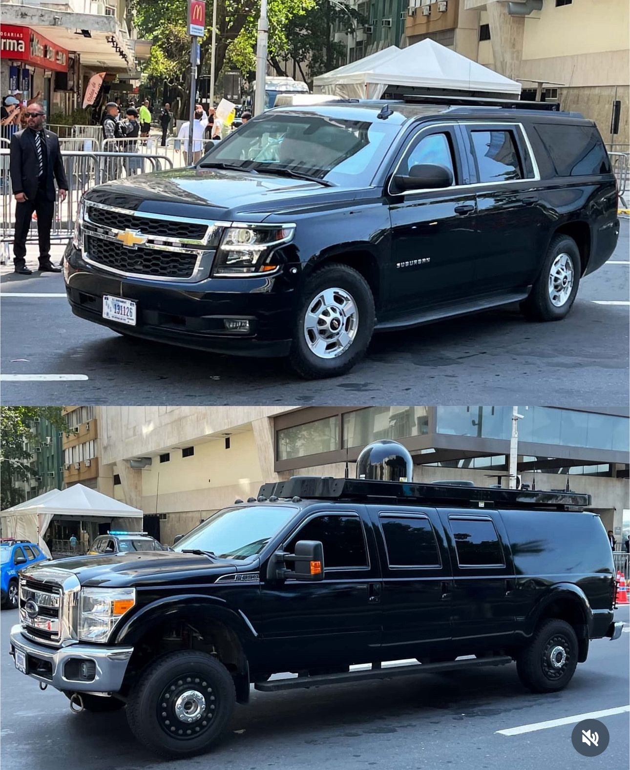 Entre os destaques está a limousine presidencial conhecida como “The Beast”, além de uma frota composta por caminhonetes Ford F-550, F-350 Super Duty e diversas SUVs Chevrolet Suburban.