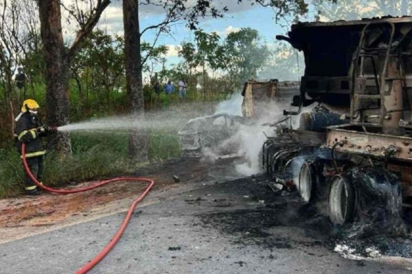Após a colisão frontal entre o carro da família e um caminhão, os veículos pegaram fogo, e as vítimas não conseguiram sair a tempo, morrendo carbonizadas.