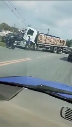 De acordo com informações iniciais, o condutor do carro foi atingido por um dos caminhões, modelo baú, enquanto saía da rua Suzuki. Ele foi arrastado até o acostamento, onde ainda colidiu com um poste e ficou destruído.