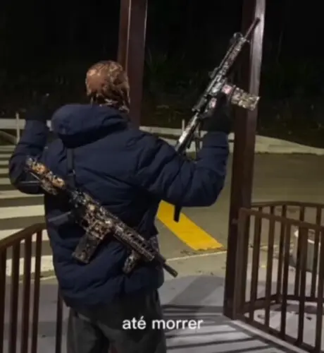 Em uma das publicações, João aparece de costas segurando uma metralhadora com a música “Vai ficar nessa vida aí até quando?”. “Até morrer”, responde.