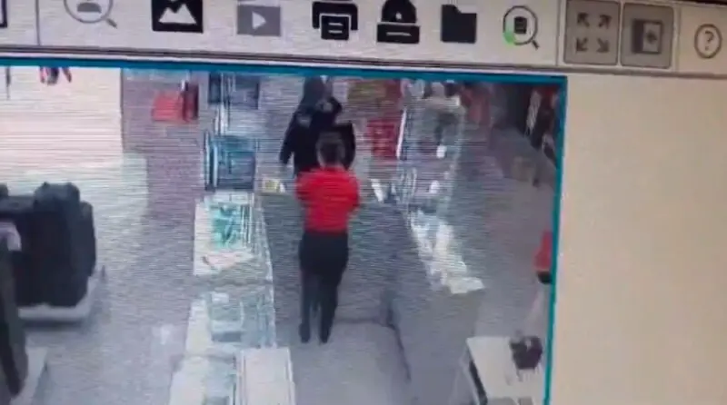 O homem vai até a loja e pede para a vendedora mostrar os aparelhos disponíveis. Em seguida, ele anuncia o assalto, pega os dois celulares, avaliados em R$ 10 mil e foge no carro branco.