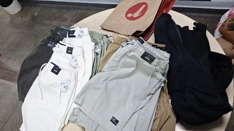Com eles foram encontradas 31 bermudas masculina, avaliadas em mais de R$ 3 mil. De acordo com a polícia, o furto ocorreu por volta das 18h20, dentro da Renner.