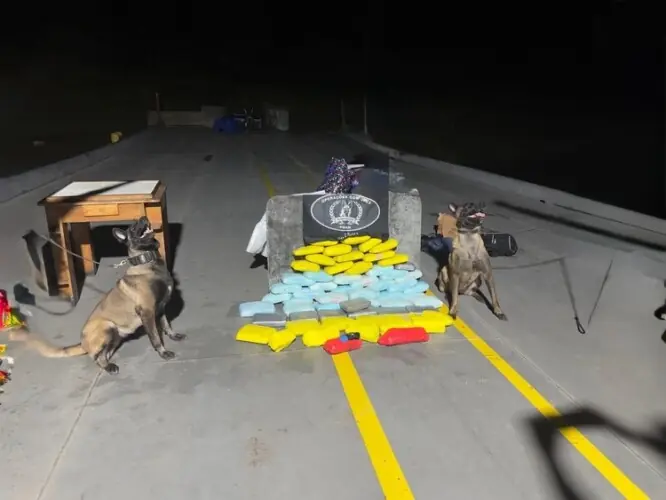 Durante a revista, os policiais militares, com o apoio das cadelas Havana e Athena, da Companhia Independente de Policiamento com Cães (CipCães), localizaram os entorpecentes. As drogas estavam disfarçadas em malas, bolsas e caixas de bolacha.