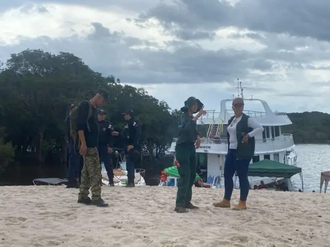 A Prefeitura de Manaus, por meio da Secretaria Municipal de Meio Ambiente, Sustentabilidade e Mudança do Clima (Semmasclima), realizou, nesta terça-feira, 4/3, uma fiscalização na praia do Tupé, localizada na Reserva de Desenvolvimento Sustentável (RDS) do Tupé, a 25 quilômetros de Manaus. Durante a operação, 15 embarcações foram abordadas.