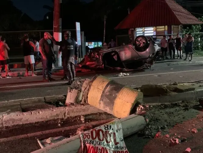Em seguida, o homem passou a perseguir os suspeitos, quando os criminosos perderam o controle do carro e acabaram capotando na pista.