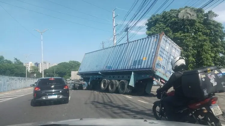 Manaus/AM – Um contêiner tombou parcialmente na manhã desta terça-feira (18), na Av. Efigênio Sales, no bairro Aleixo, na zona centro-sul.