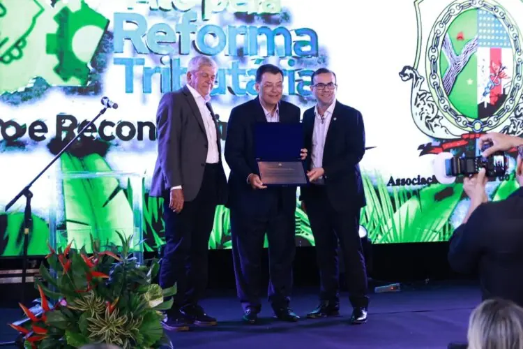 O senador Eduardo Braga foi homenageado na noite sexta-feira (28/03), em Manaus, pela Associação Comercial do Amazonas (ACA) pelo trabalho desempenhado como relator da Reforma Tributária no Congresso Nacional, cujo resultado garantiu a manutenção dos incentivos fiscais da Zona Franca de Manaus (ZFM), incluindo o setor de comércio e serviços, na nova matriz de tributos sobre o consumo do país.