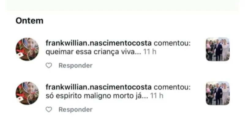 Uma ameaça absurda, cruel e impensável foi feita nas redes sociais contra a filha do prefeito de Manaus, David Almeida, e sua neta, uma criança pequena e inocente. Ao acessar os comentários de uma publicação no Instagram, a jovem mãe se deparou com uma mensagem que nenhum ser humano deveria ler: “Queimar essa criança viva.” O medo e a dor tomaram conta da família, que imediatamente procurou a polícia.