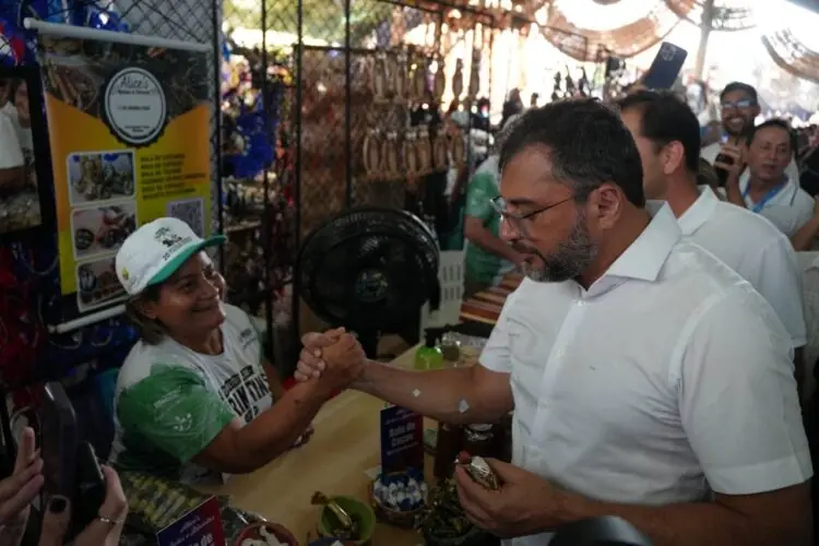 O governador Wilson Lima visitou os estandes da 20ª Mostra de Artesanato e Economia Solidária e a 5ª Feira de Artesanato Indígena, localizadas na Praça da Catedral de Nossa Senhora do Carmo. Os espaços fazem parte da programação cultural do Festival de Parintins 2025 e contam com a participação de mais de 140 artesãos cadastrados no Programa do Artesanato Amazonense.