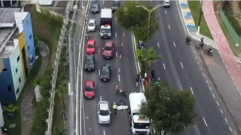 Manaus/AM – O trânsito ficou lento na Avenida Coronel Teixeira, no bairro Ponta Negra, zona oeste da cidade, na manhã desta quarta-feira (25), após a morte de um motociclista ainda não identificado.