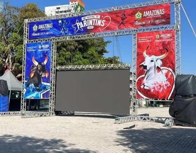 Manaus/AM – A poucos dias do Festival de Parintins, uma estrutura especial começou a ser montada no Largo de São Sebastião, no Centro de Manaus, onde o público poderá acompanhar ao vivo todas as emoções da disputa entre Garantido e Caprichoso. O evento acontece entre os dias 27 e 29 de junho, com entrada gratuita.