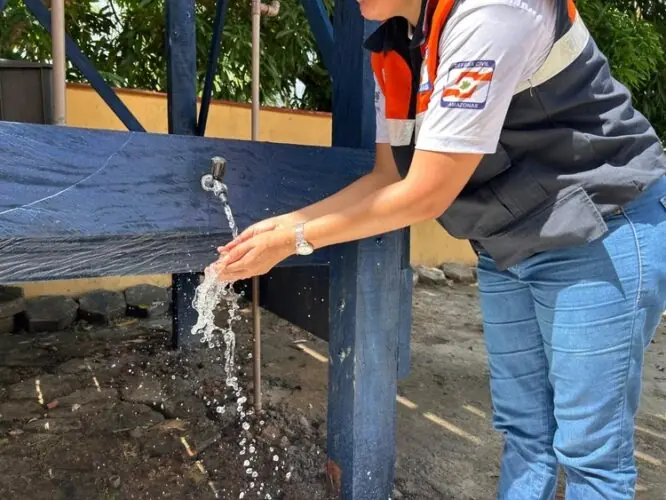Manaus/AM – Durante o Festival de Parintins, a Defesa Civil do Amazonas montou, na sede do Corpo de Bombeiros de Parintins, localizado na avenida Paraíba, Nº 1.050, bairro de Palmares, um ponto de hidratação gratuita para a população. Com capacidade de até 5 mil litros por dia, o local fica disponível diariamente das 8h às 17h, basta levar um recipiente ou garrafão.