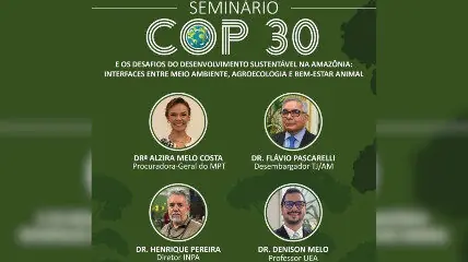 A Câmara Municipal de Manaus (CMM), por meio da Escola do Legislativo Vereadora Léa Alencar, realiza no próximo dia 8 de julho, das 8h às 12h, o seminário “COP30: Os Desafios do Desenvolvimento Sustentável na Amazônia – Interfaces entre Meio Ambiente, Agroecologia e Bem-Estar Animal”. A iniciativa visa antecipar os debates da 30ª Conferência das Nações Unidas sobre Mudanças Climáticas (COP30), que será sediada este ano no Brasil, na cidade de Belém (PA), entre os dias 10 e 21 de novembro.