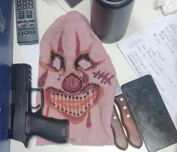 Com o detido foram apreendidos um simulacro de arma de fogo, duas facas e um celular. O caso foi encaminhado ao 1º Distrito Integrado de Polícia (DIP) para os procedimentos legais.
