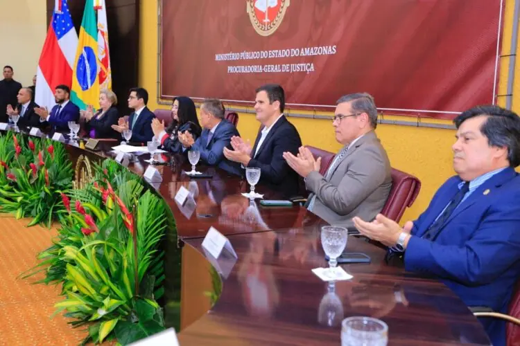 O prefeito de Manaus em exercício, Renato Junior, prestigiou, nesta sexta-feira, 18/7, a cerimônia de posse de cinco novos promotores de Justiça do Ministério Público do Amazonas (MP-AM). O evento contou com a presença da procuradora-geral de Justiça, Leda Mara Albuquerque, e autoridades do Judiciário, do Legislativo e do Executivo.