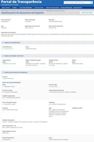 A verba foi direcionada em 2024 para a realização de um projeto de e-sports no estado do Amazonas. A associação é responsável por promover eventos e competições digitais com foco no público jovem, mas é acusada de fraudar a execução dos projetos e apresentar informações falsas sobre parcerias institucionais.