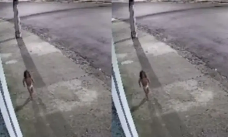 Imagens de câmeras de segurança flagraram a criança andando sozinha, descalça e usando apenas uma fralda enquanto chora chamando pela mãe. Ela foi avistada por funcionários da Enel, que realizavam manutenção na via, e acionaram a Polícia Militar.