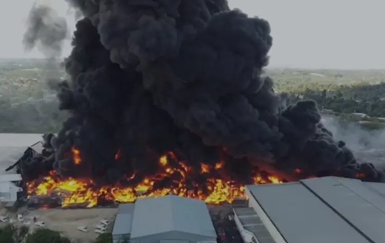 O incêndio que atingiu as fábricas Effa Motors e Valfilm da Amazônia, localizadas no Distrito Industrial II, já dura aproximadamente 19 horas, nesta quarta-feira (6). A fumaça negra toma conta do céu e pode ser vista de longe em vários bairros da cidade.