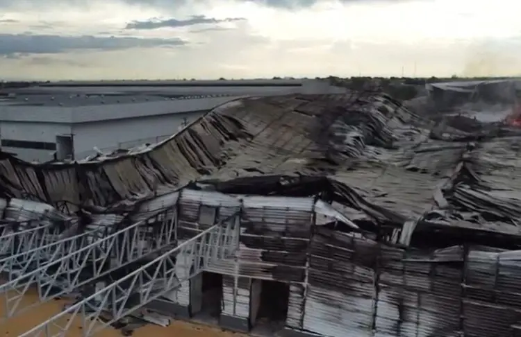 O incêndio que atingiu duas fábricas no Distrito Industrial foi controlado após mais de 40 horas de combate. Desde a madrugada, os bombeiros trabalham no rescaldo do local, que foi completamente destruído.