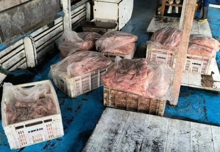 O pescado, totalmente impróprio para consumo, estava cortado e embalado em sacos plásticos. Ele seria vendido em feiras e estabelecimentos comerciais da cidade.