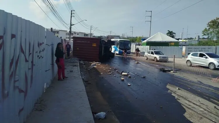 Uma carreta tombou na manhã desta terça-feira (7), na avenida Autaz Mirim, nas proximidades do bairro Coroado, na zona leste.