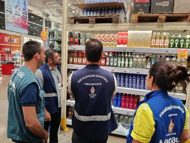 A Prefeitura de Manaus, por meio da Diretoria de Vigilância Sanitária (Visa Manaus) da Secretaria Municipal de Saúde (Semsa), realizou, nesta quarta-feira, 15/10, uma fiscalização em um supermercado da zona Oeste da cidade, como parte da operação “Zero Metanol”, que verifica a segurança sanitária das bebidas alcoólicas vendidas à população.
