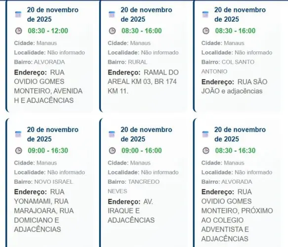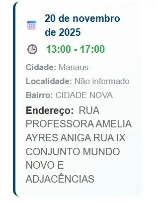 Moradores e comerciantes de cinco bairros devem ficar sem energia neste feriado desta quinta-feira (20), Dia da Consciência Negra, devido ao desligamento preventivo que será realizado pela concessionária Amazonas Energia.