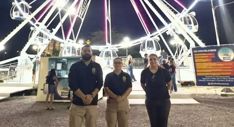 A roda-gigante com 18 cabines, inaugurada durante a 2ª Parada Natalina na Ponta Negra, passou por fiscalização técnica do Conselho Regional de Engenharia e Agronomia do Amazonas (Crea-AM). O equipamento, que se tornou uma das novas atrações turísticas de Manaus, foi inspecionado para garantir que sua instalação atende aos critérios de segurança e legalidade exigidos pela legislação.