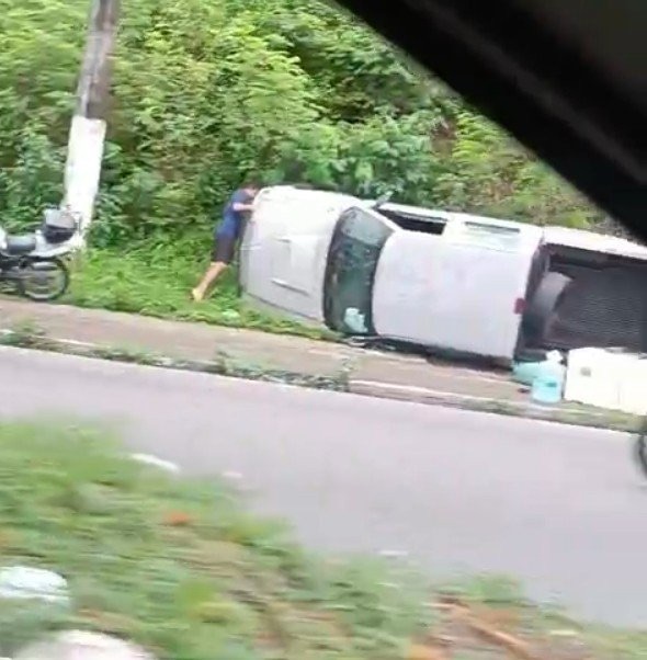 Um carro capotou na manhã desta sexta-feira (20) na Avenida Rodrigo Otávio, no bairro Japiim, em frente ao Instituto Nacional de Pesquisas da Amazônia (Inpa).